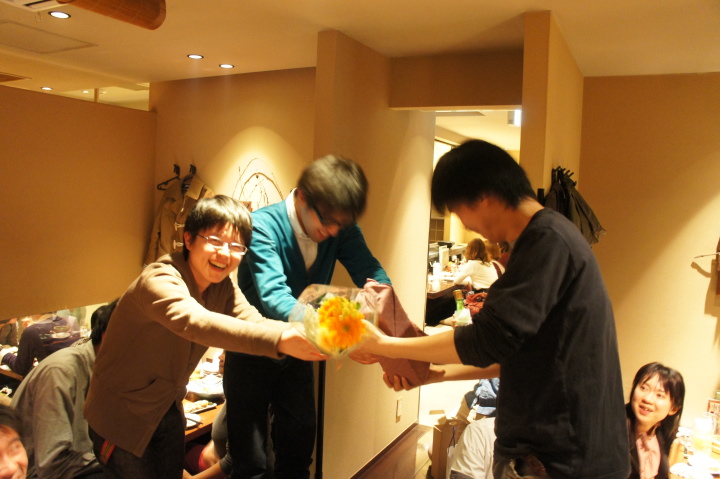 新たに修士3名、博士1名、先生1名を迎え、3月に研究室の大掃除を行い歓談し、4月に本年度も歓送迎会を行いました。